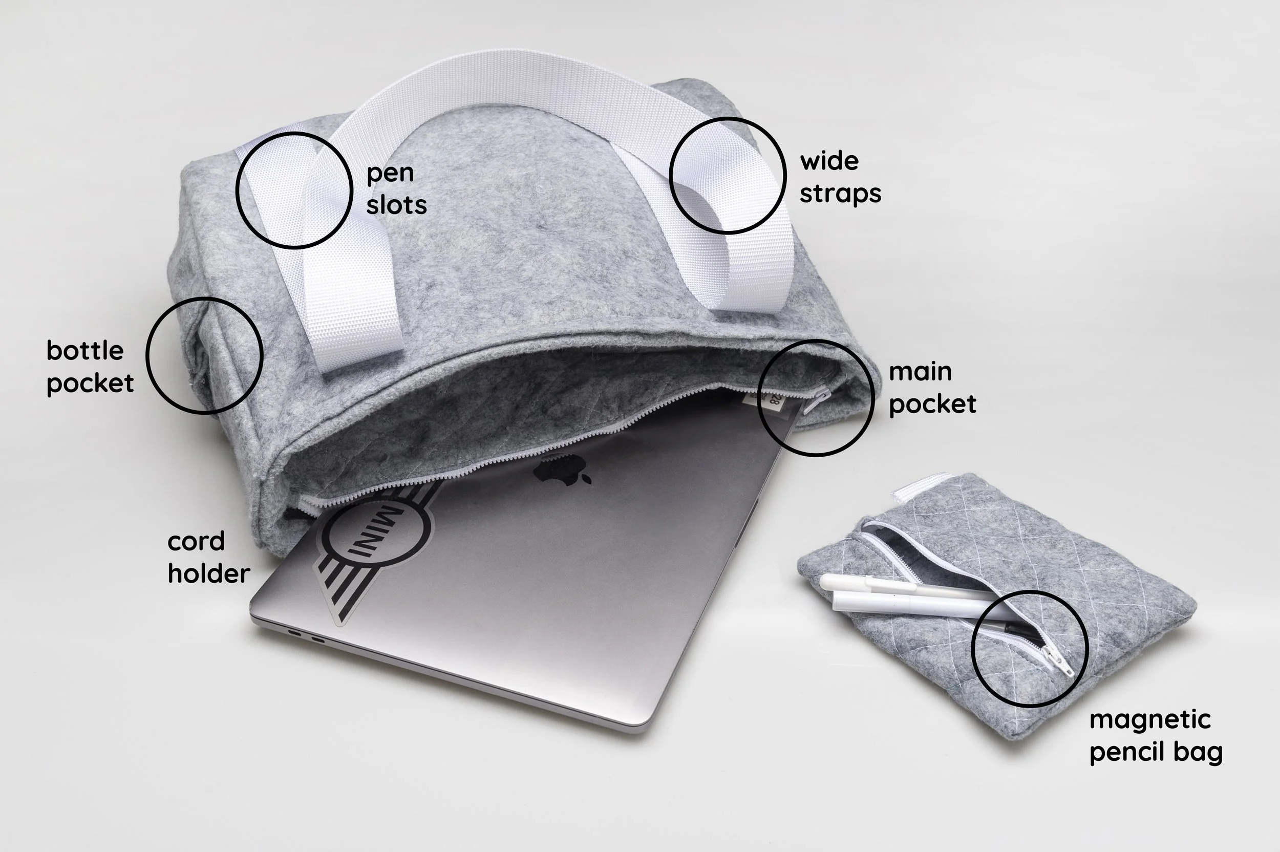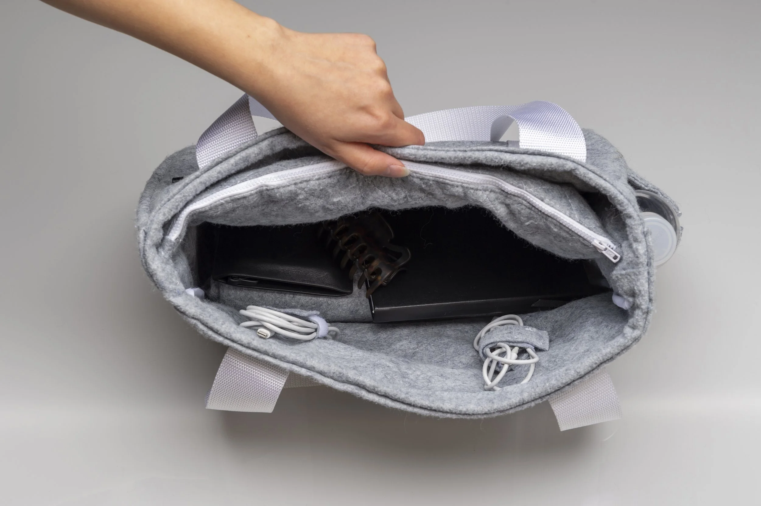 how might I create a bag that combines the best elements of a tote and a duffel bag for taking work on the go?