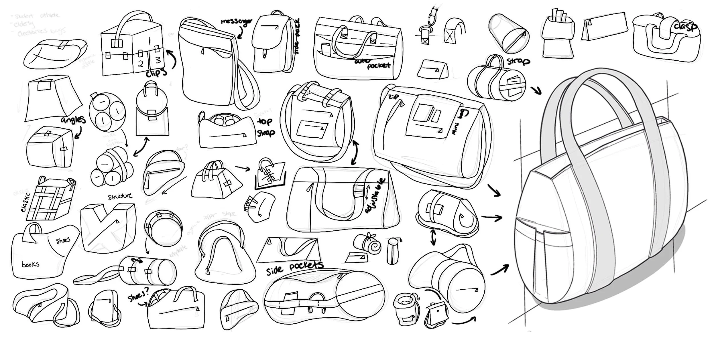 a complaint about current duffles and tote bags on the market is that items get lost in them and it is difficult to use for work, despite their convenient shape/size